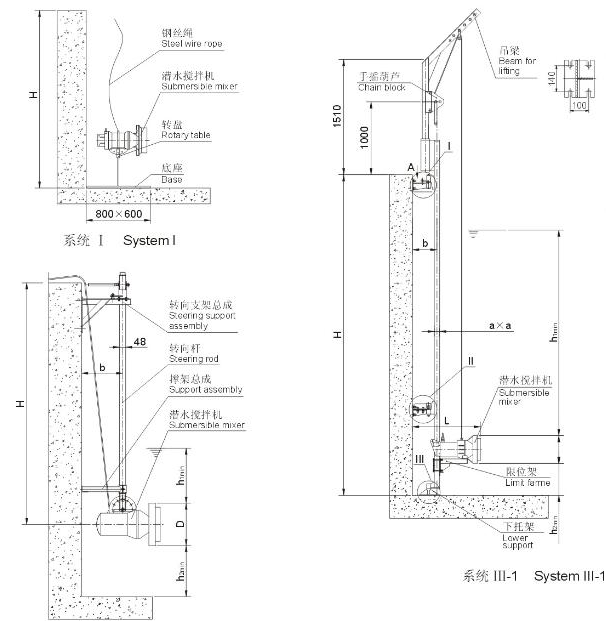潛水攪拌機安裝需知:導桿,鋼絲繩,起吊系統(tǒng)必須保持平行